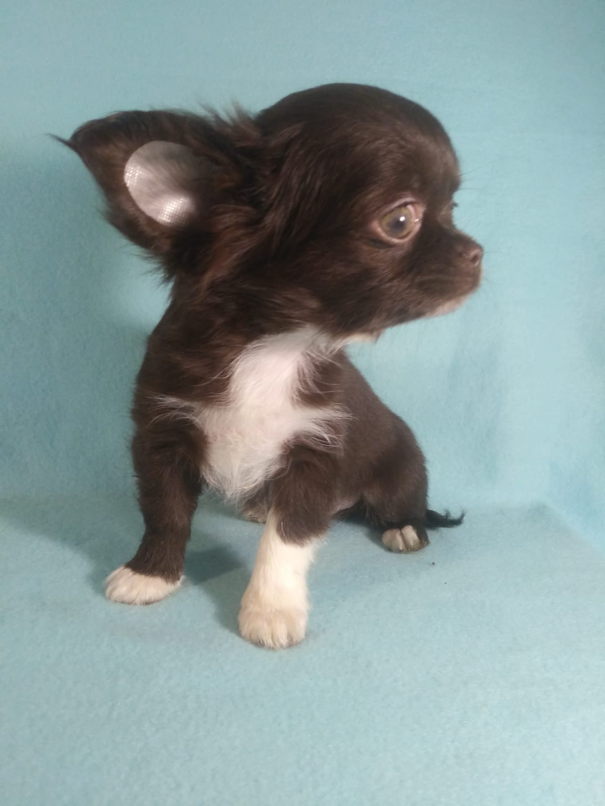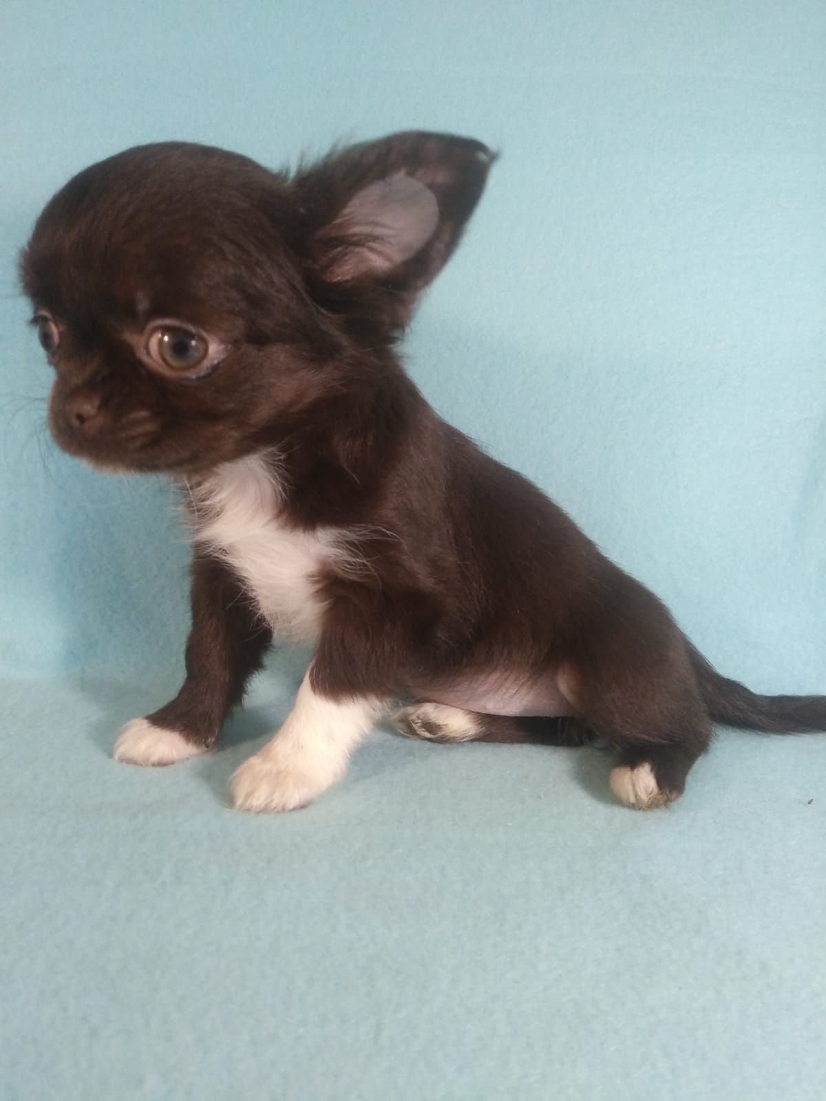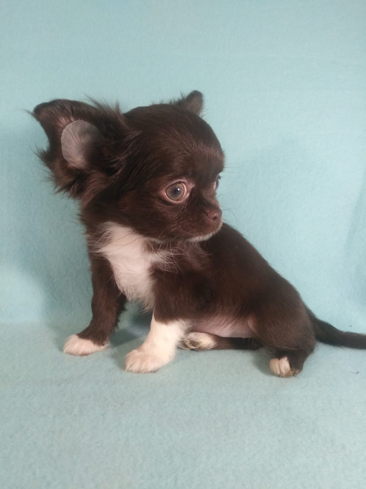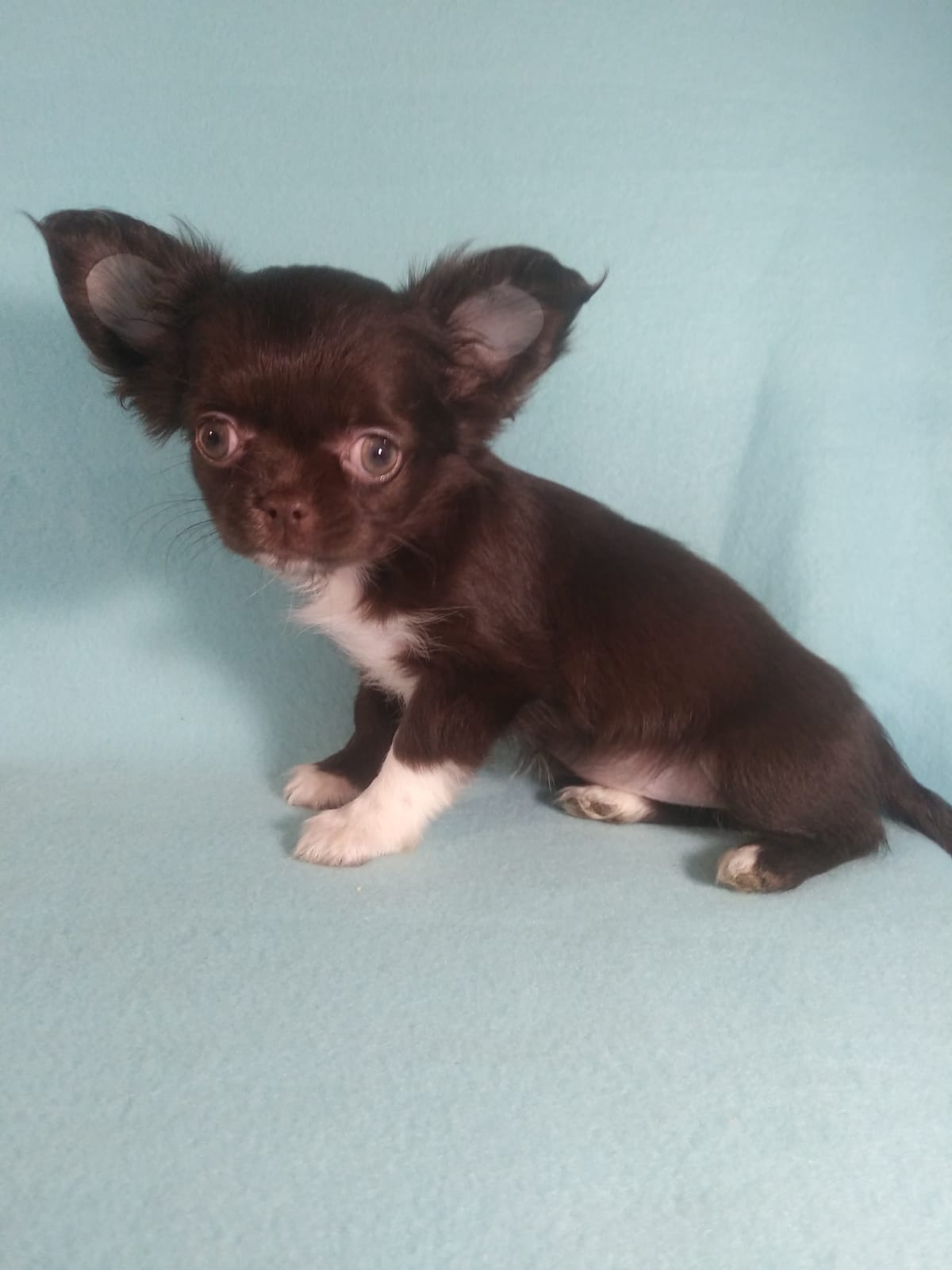 Предлагается шикарная девочка чихуахуа, красивая крупная голова,крутой стоп, курносая мордочка с выразительными глазами, крепкий костяк, хвостик серпиком,хорошо одета, насыщенного горько шоколадного окраса. Очень умная, дружелюбная и активная малышка. Привита, с документами, без недостатков, прикус ножницы. Кушает сухой корм, при покупке корм на первое время в подарок.